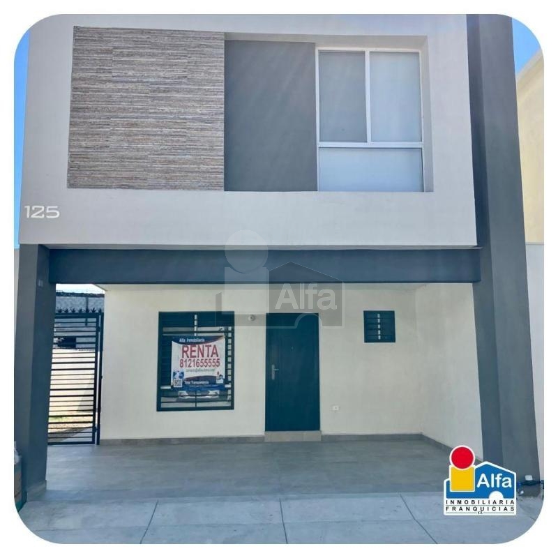 Casa en renta AMUEBLADA Y EQUIPADA, cocina integral con estufa, campana, refrigerador, tres mini split (dos frio y uno frio/calor) , interiores de roperias, pasto sintetico en el patio, muebles en sala, comedor, recamaras, fraccionamiento privado con caseta de vigilancia, casa club con salón de eventos, asadores, alberca, parque, juegos infantiles, en excelente zona de Apodaca, cercana a avenidas principales , aeropuerto, Miguel Alemán, plazas comerciales, supermercados, escuelas, colegios.